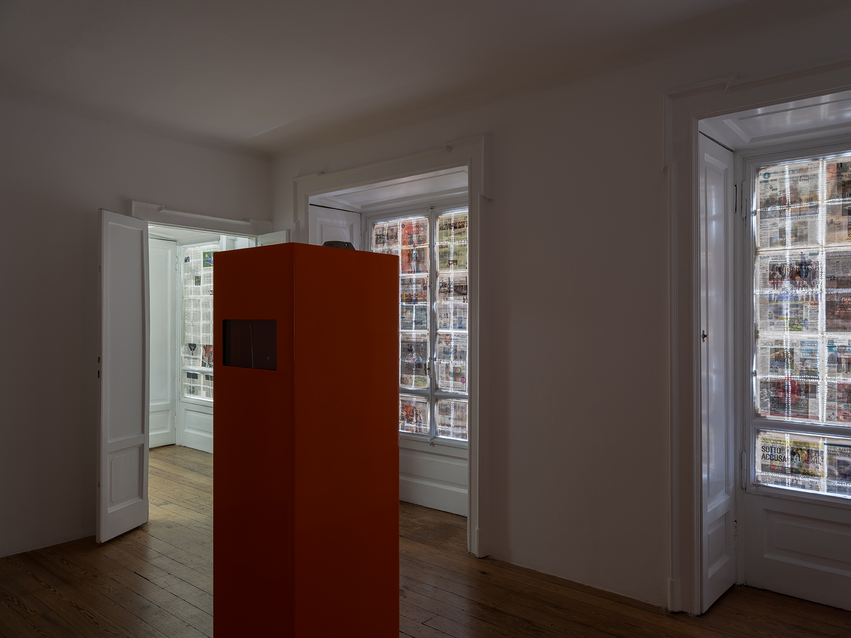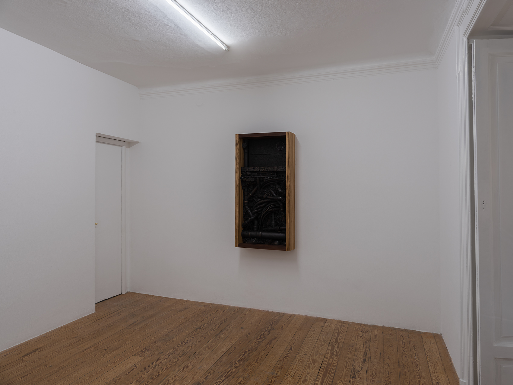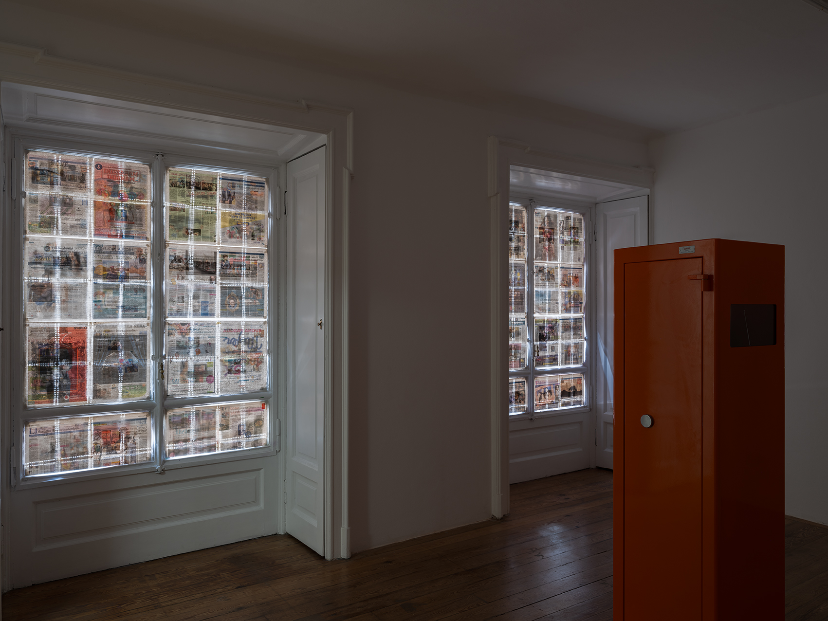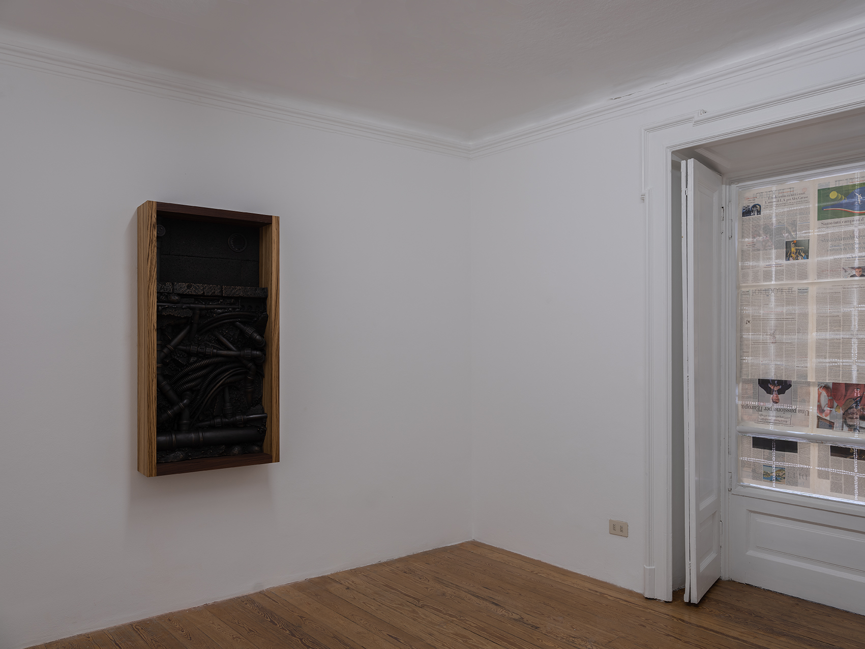 Topolino comics cutouts, rubber, tyvek, plexiglass, padlock
