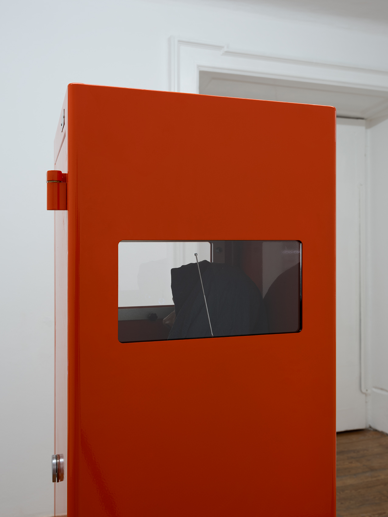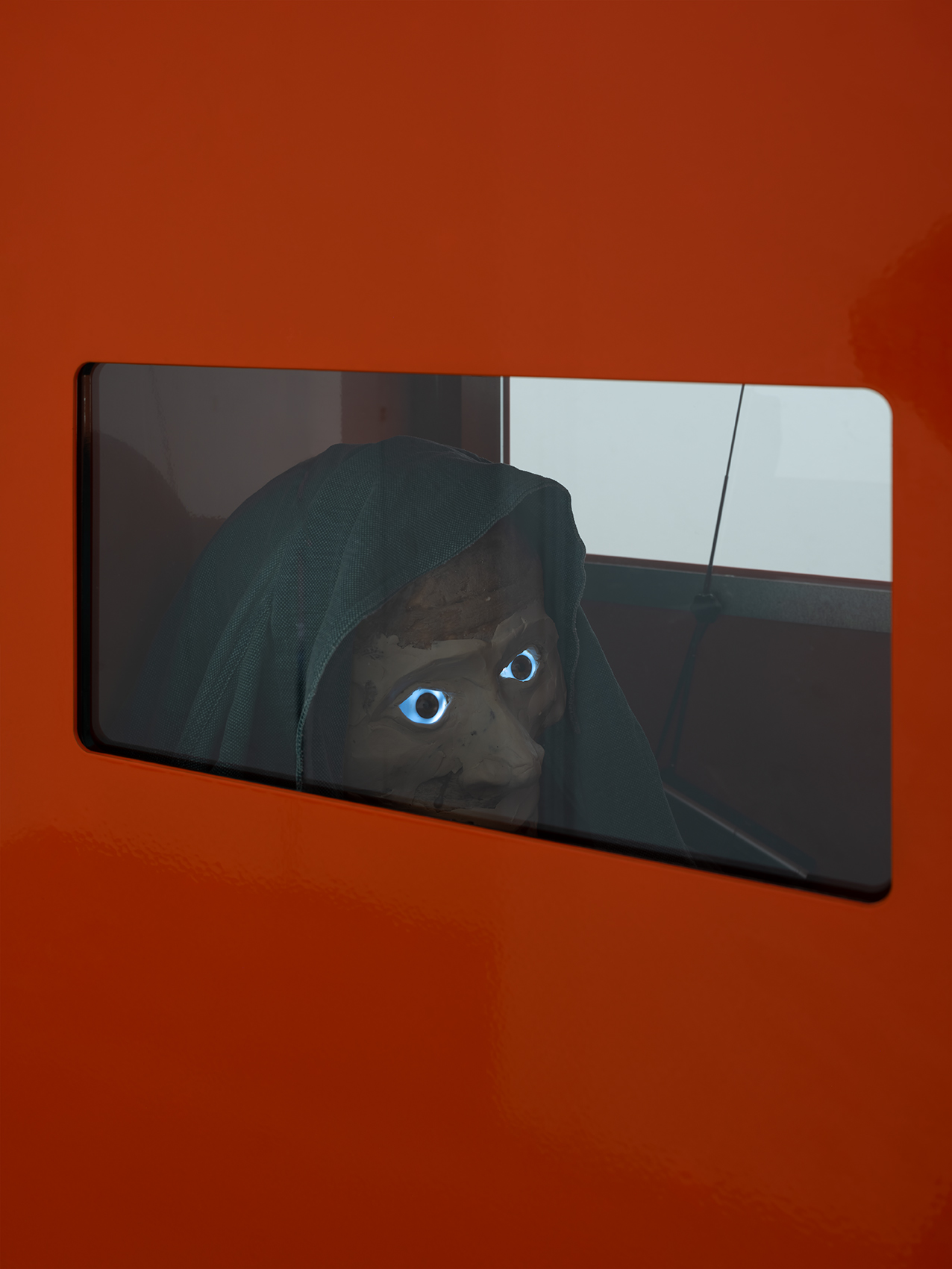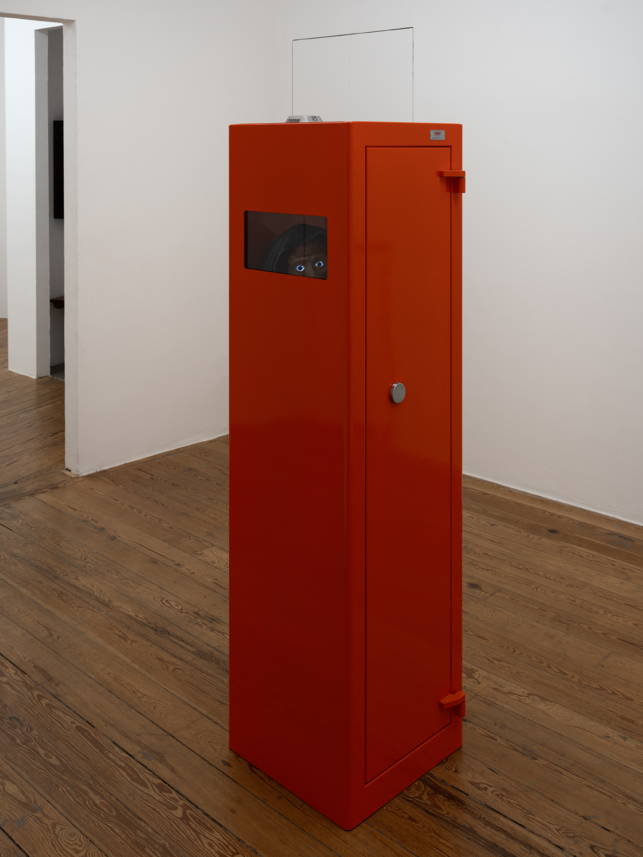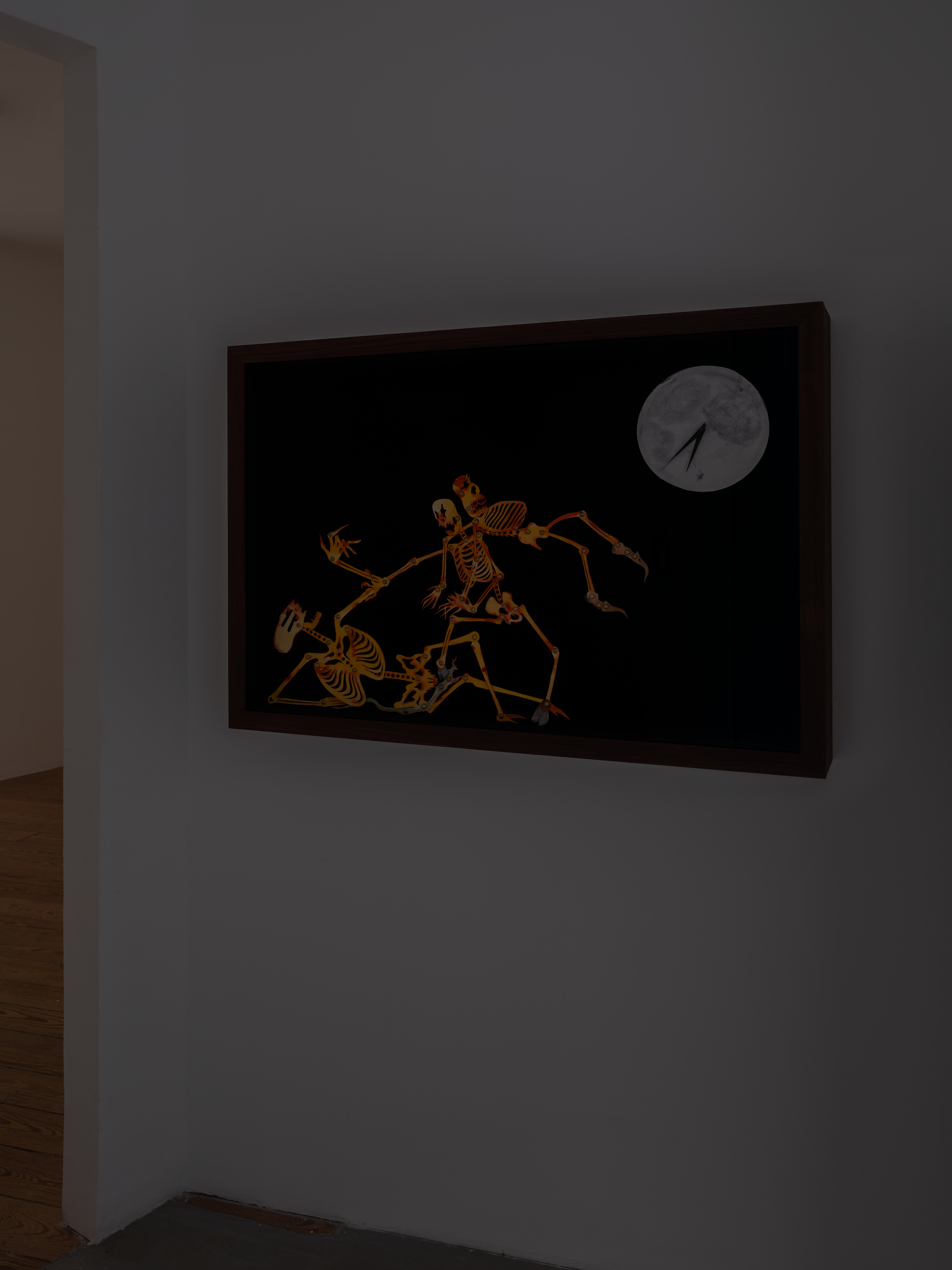 Speed camera, resin skeleton, plaster, pitch, wax, gauze, radio, diode, acrylic, blown glass, cotton, foam rubber, newspaper, electrical circuit