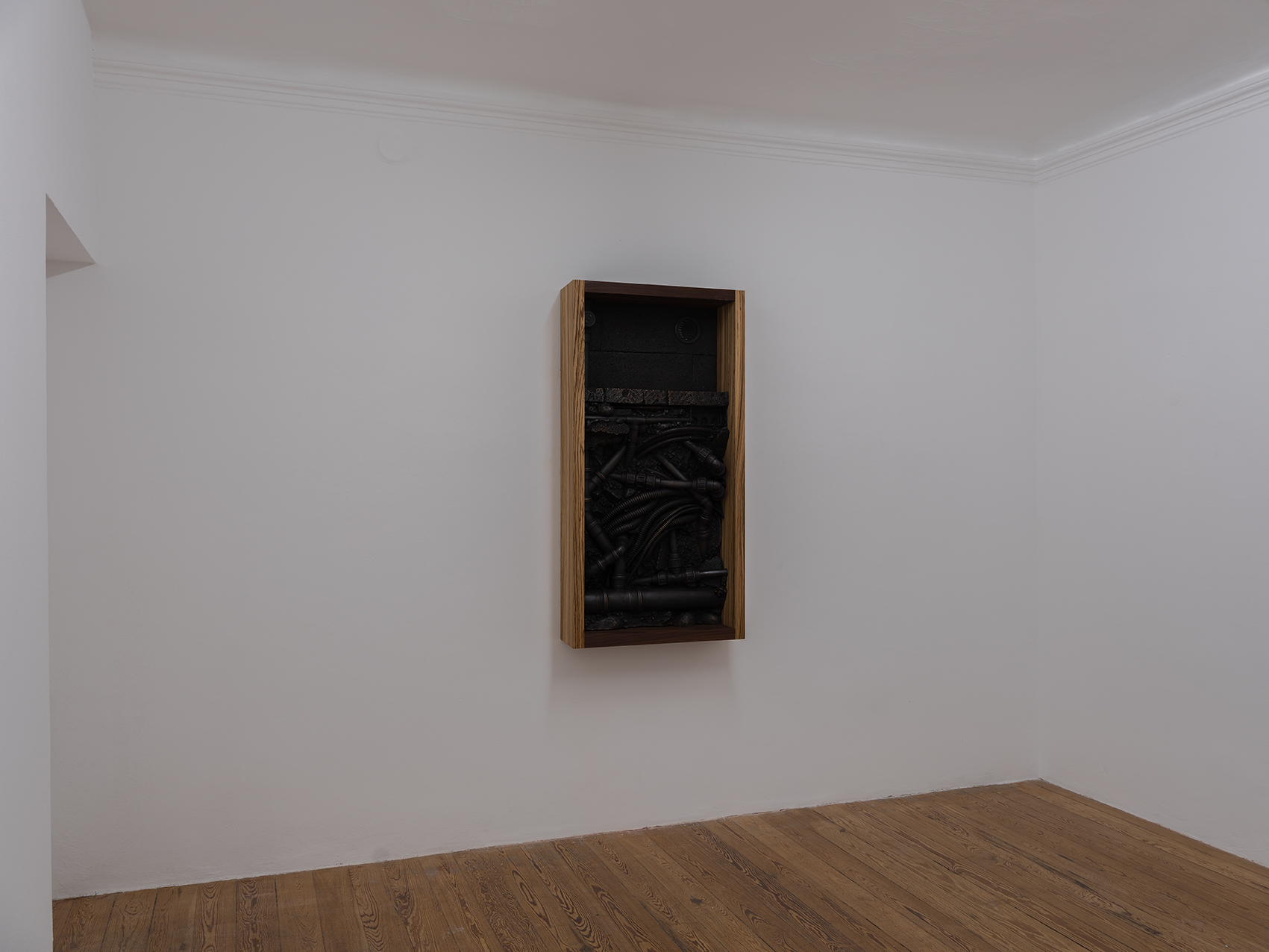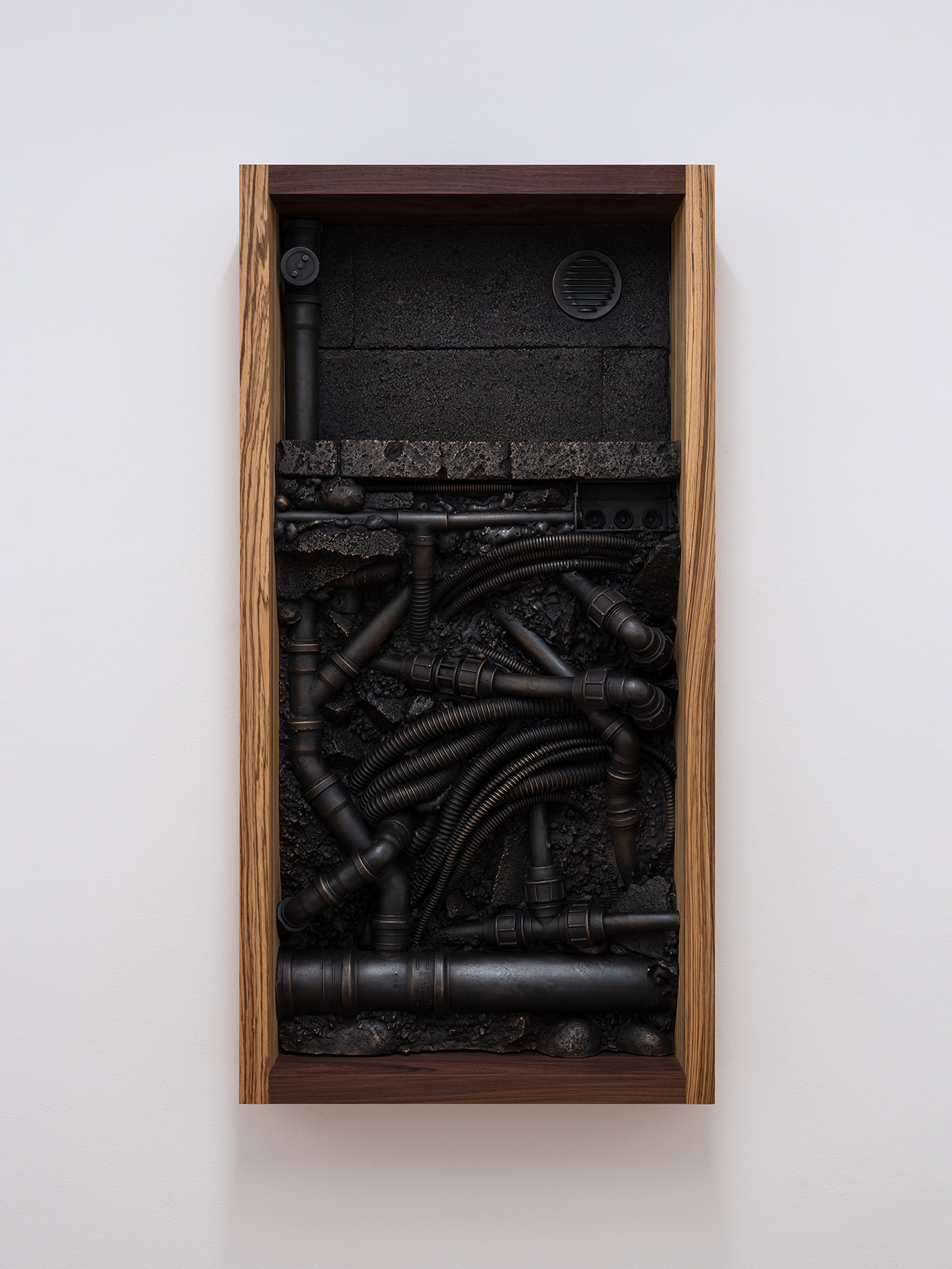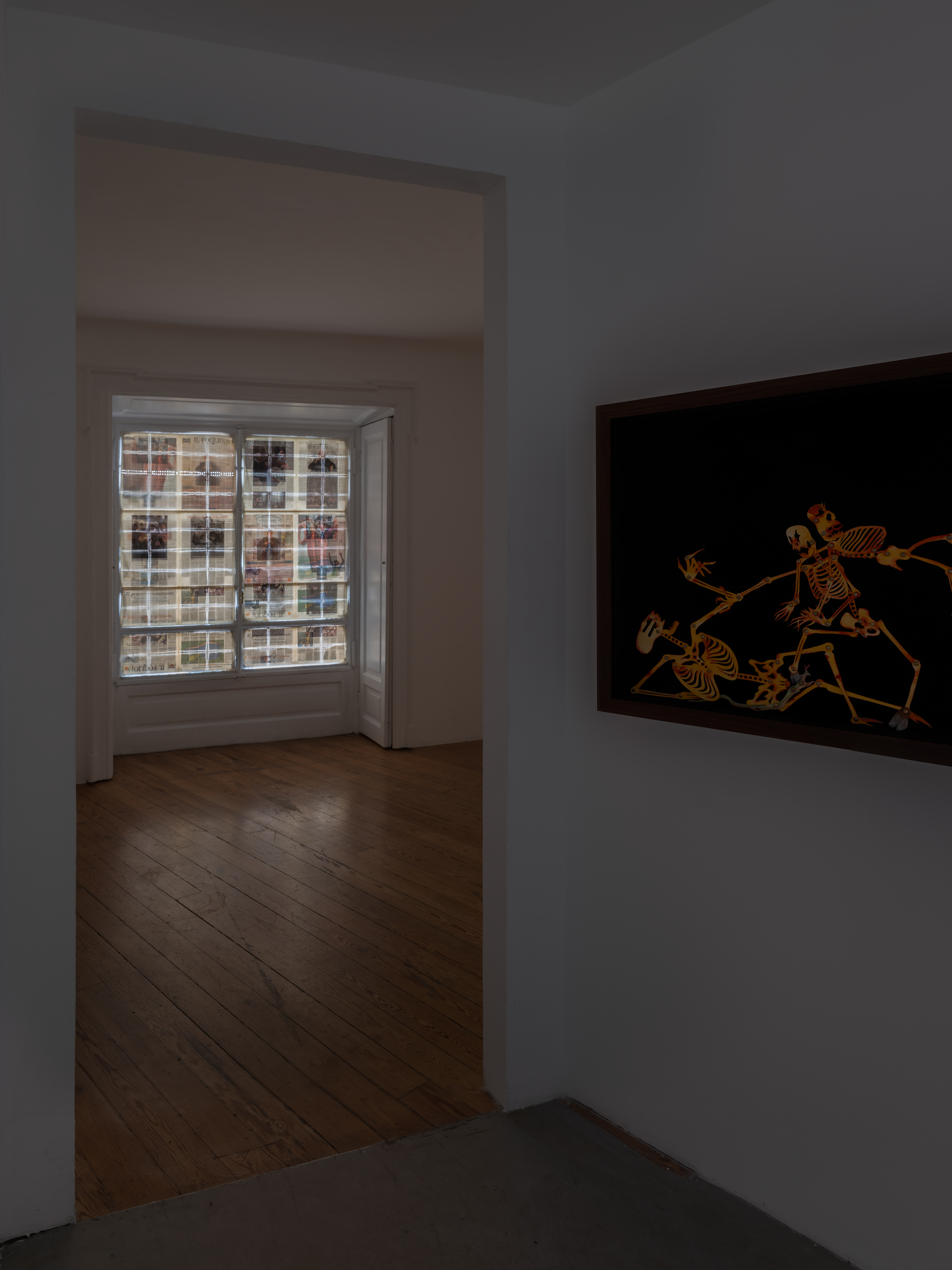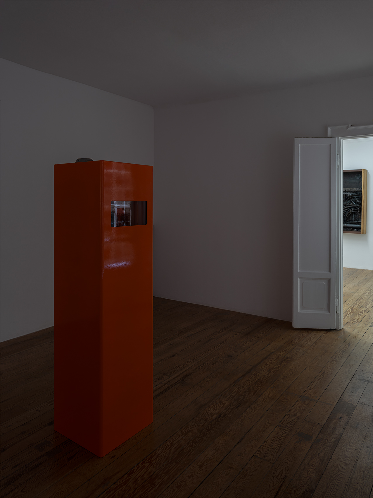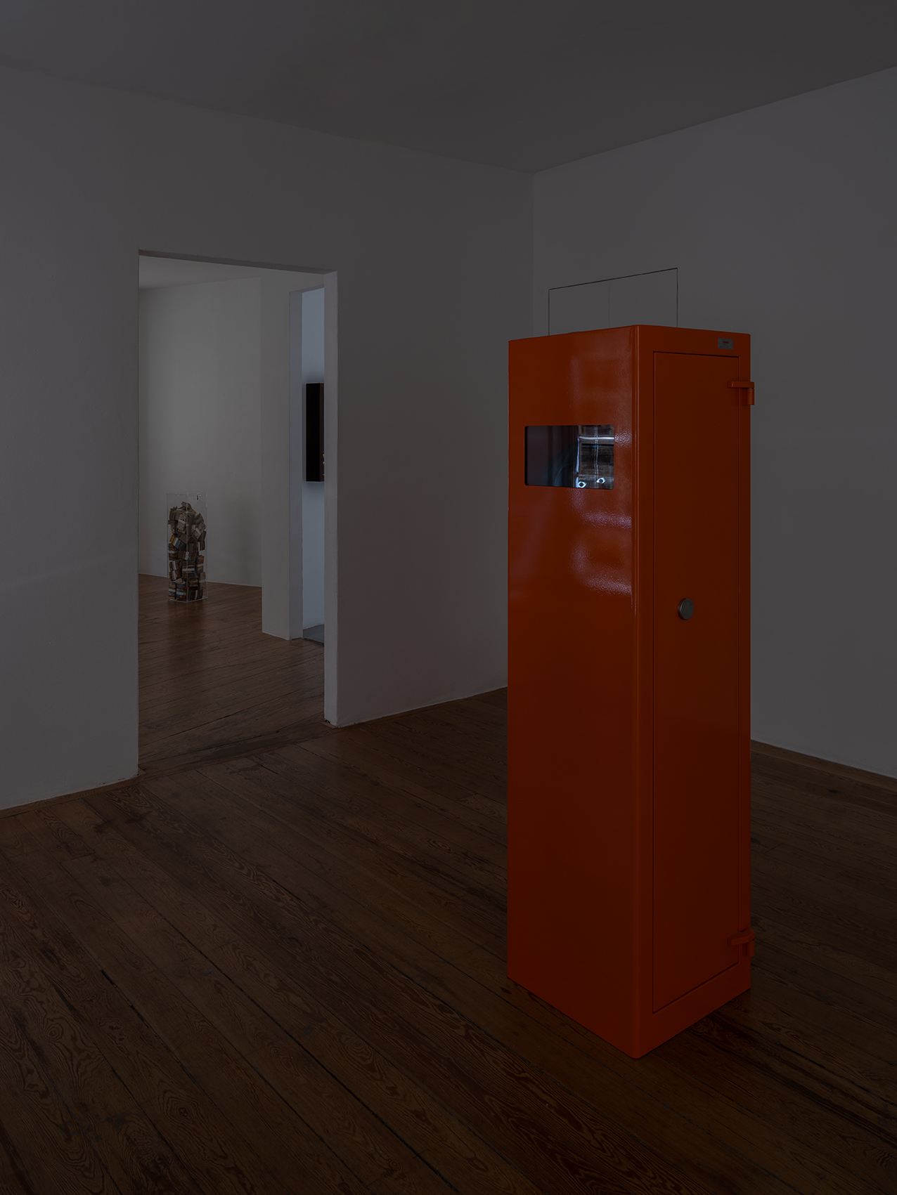 Speed camera, resin skeleton, plaster, pitch, wax, gauze, radio, diode, acrylic, blown glass, cotton, foam rubber, newspaper, electrical circuit