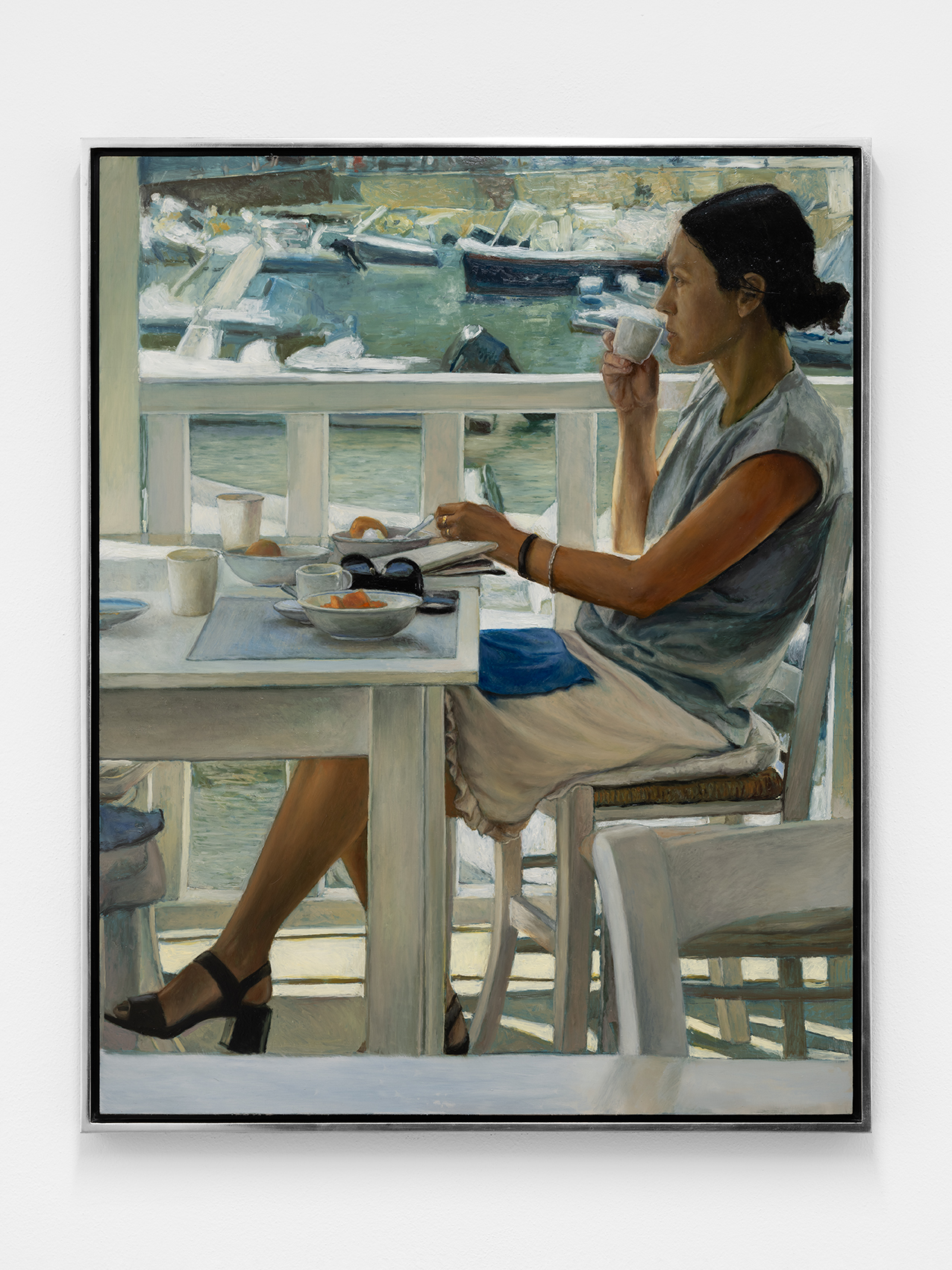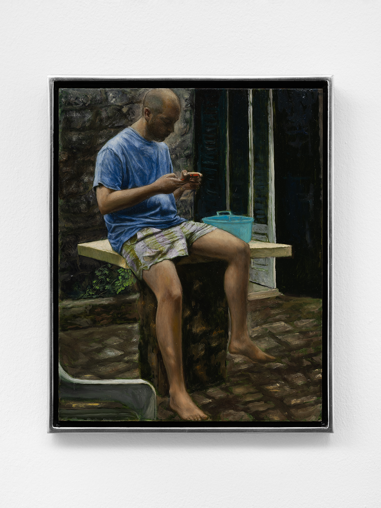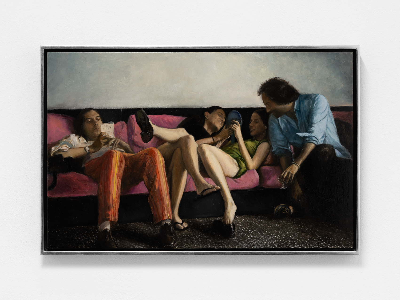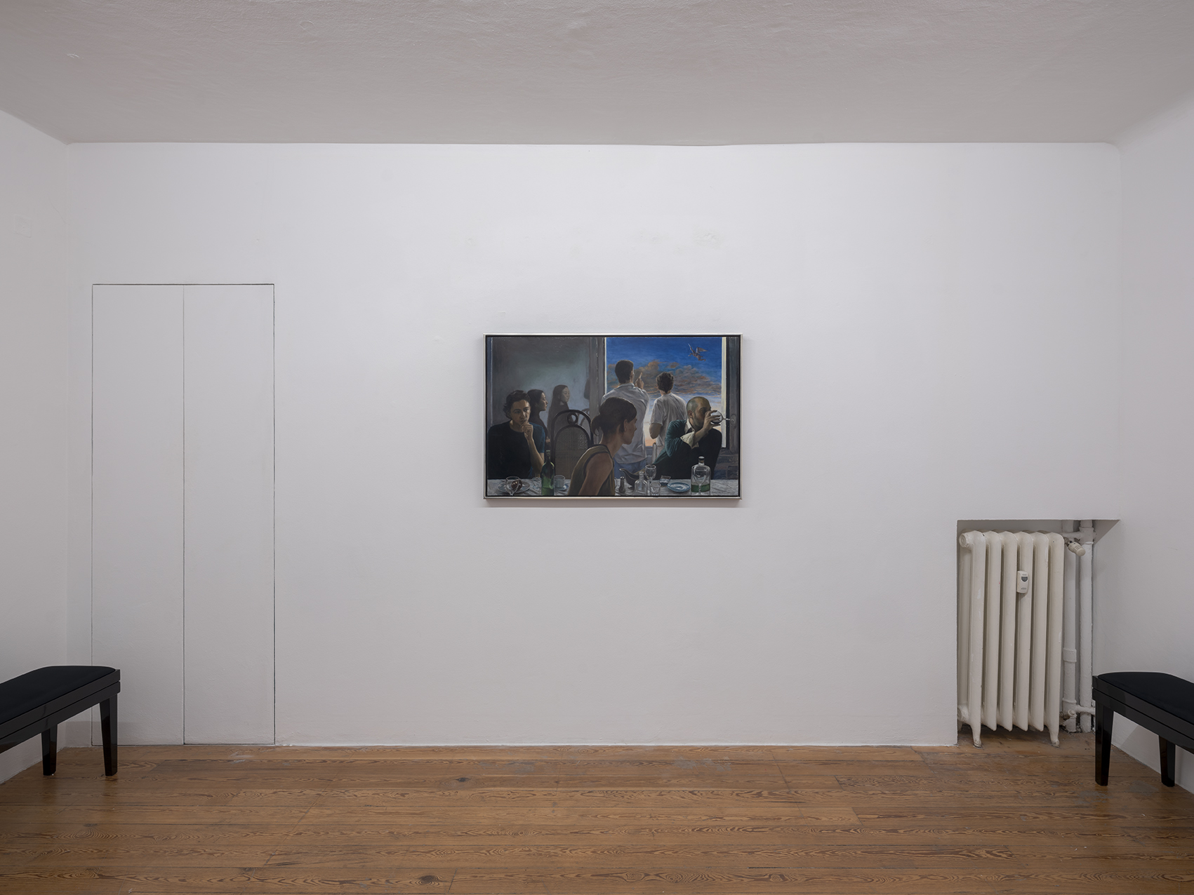 Giangiacomo Rossetti De temps en temps j'aime à voir le vieux Père, Et je me garde bien de lui rompre en Visière, 2024, 2024 Oil on panel 77,2 x 120,3 x 4,7 cm (framed)