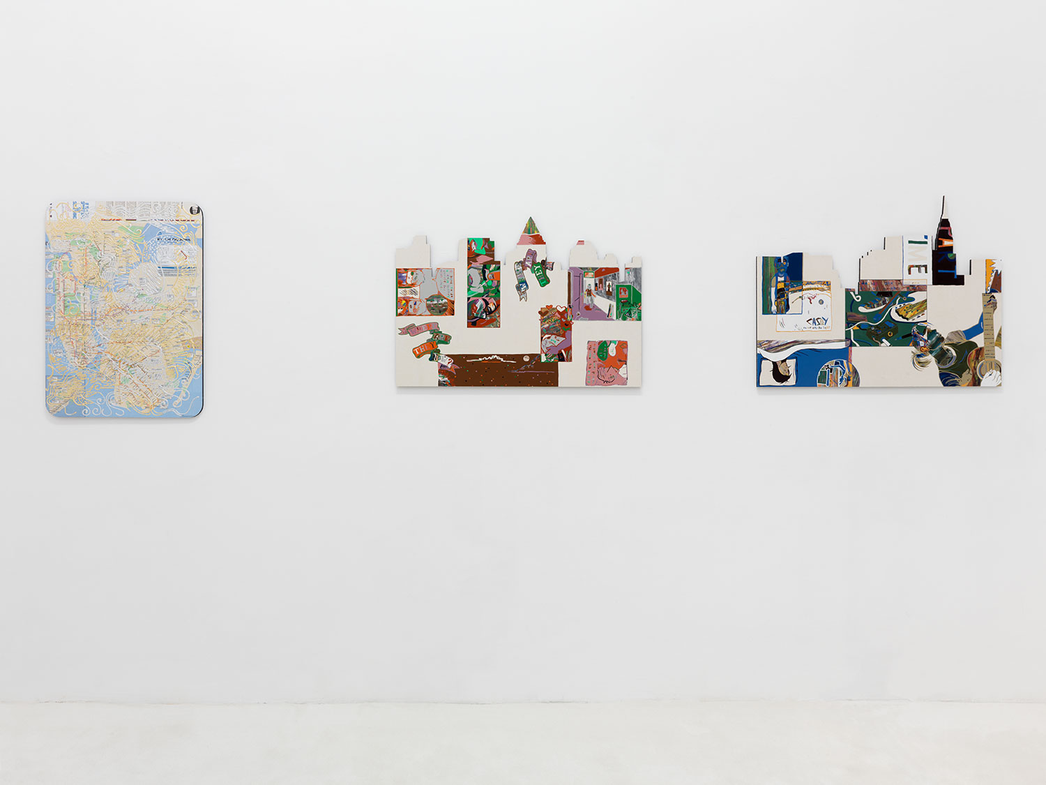 This series borrows from DIY autobiographical comics, collected by the artist in small bookstores in various US cities; and a type of graffiti influenced street art, often drawn on hats or subway maps, for sale to SoHo tourists.