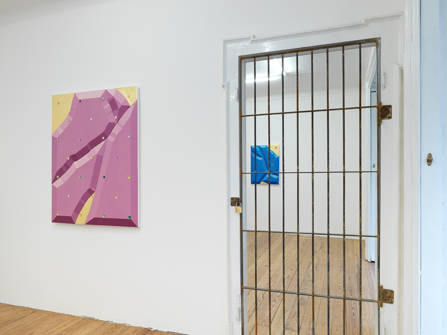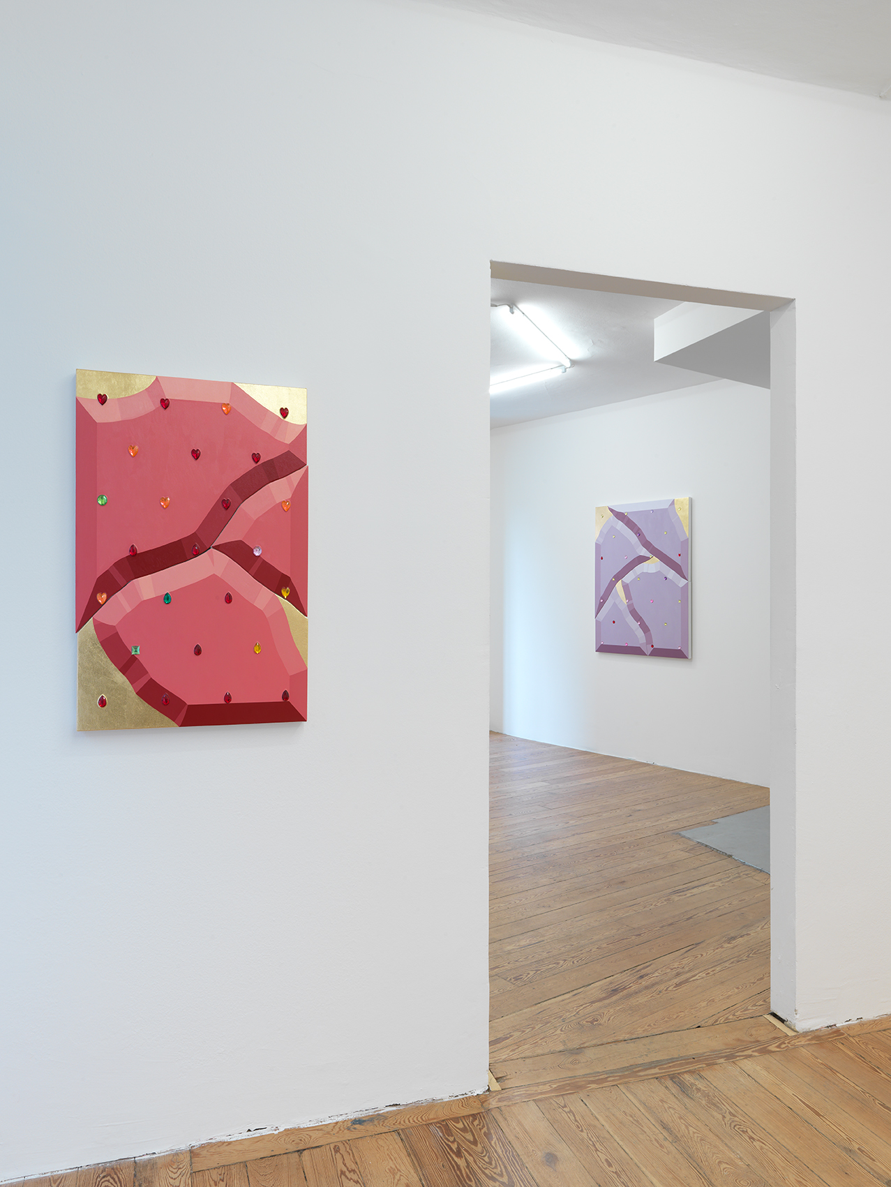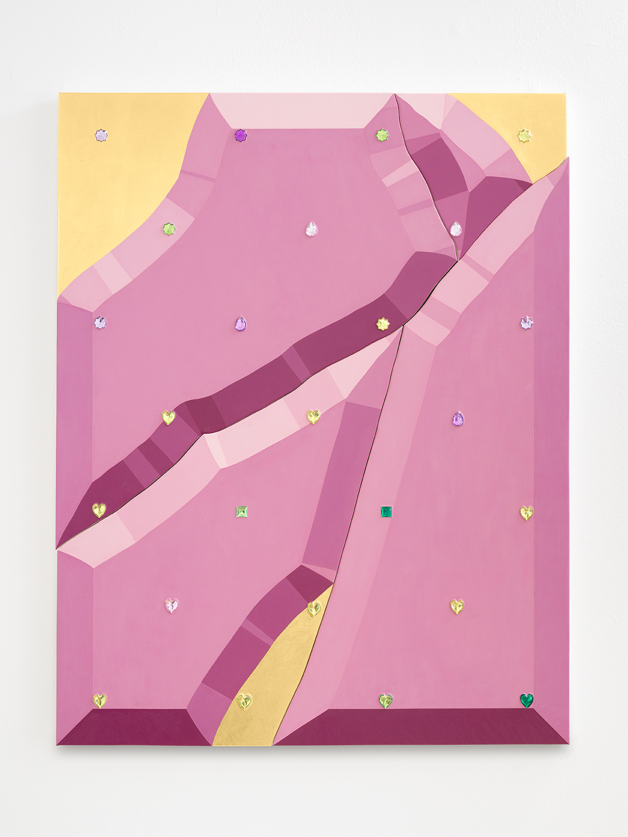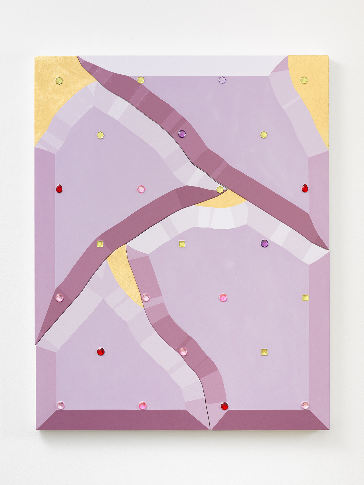 Oil, jewels and metallic leaf on canvas over shaped panels