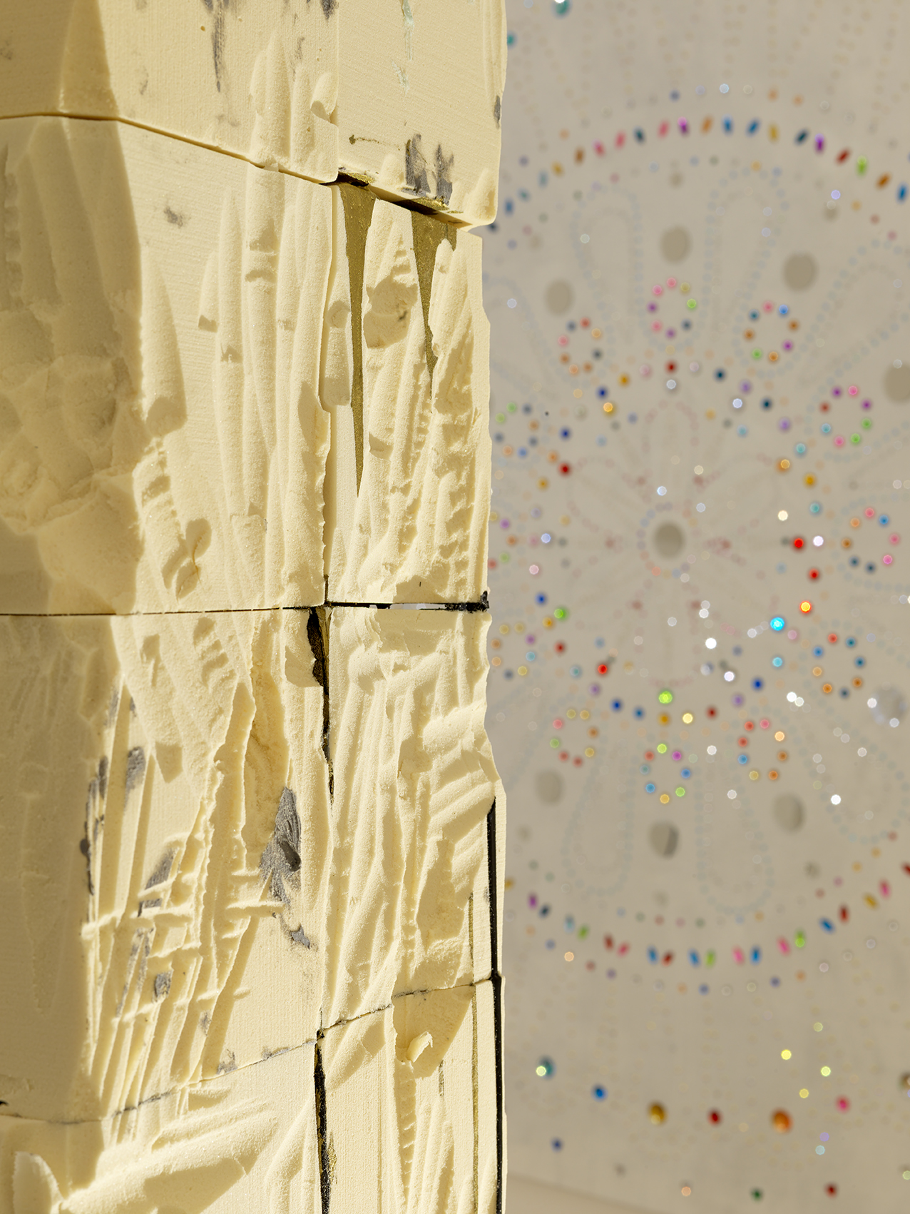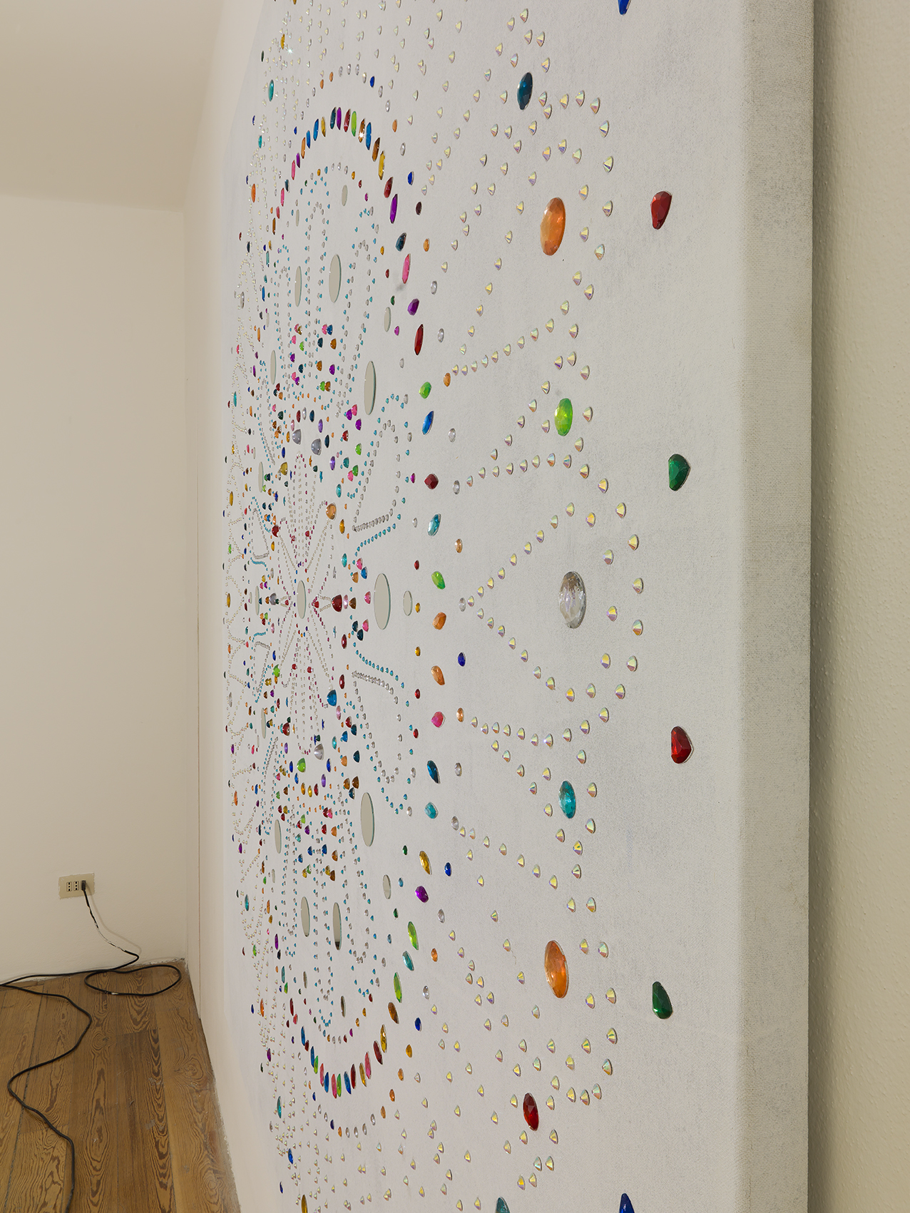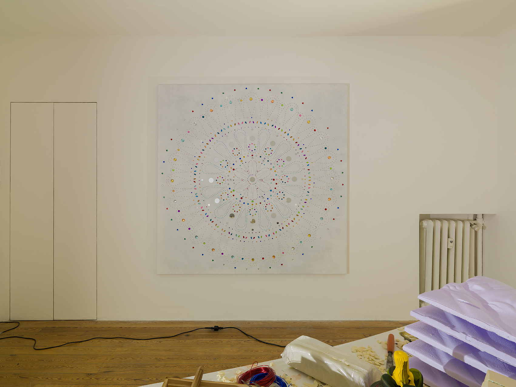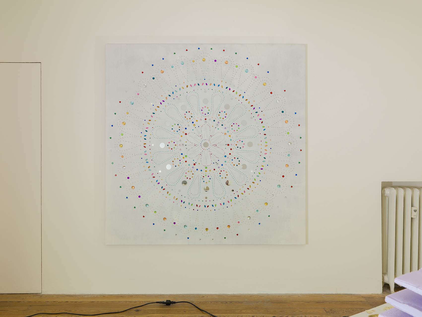 Kaspar Müller Mandala, 2022 Acrylic rhinestones on canvas, acrylic paint 187 x 187 cm