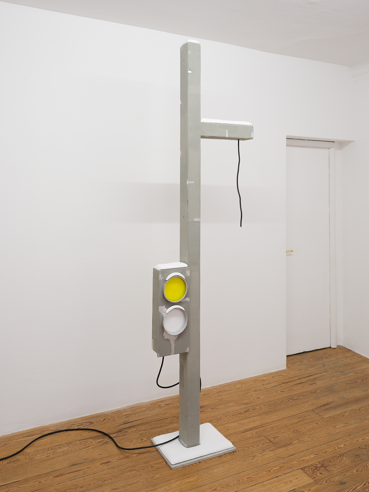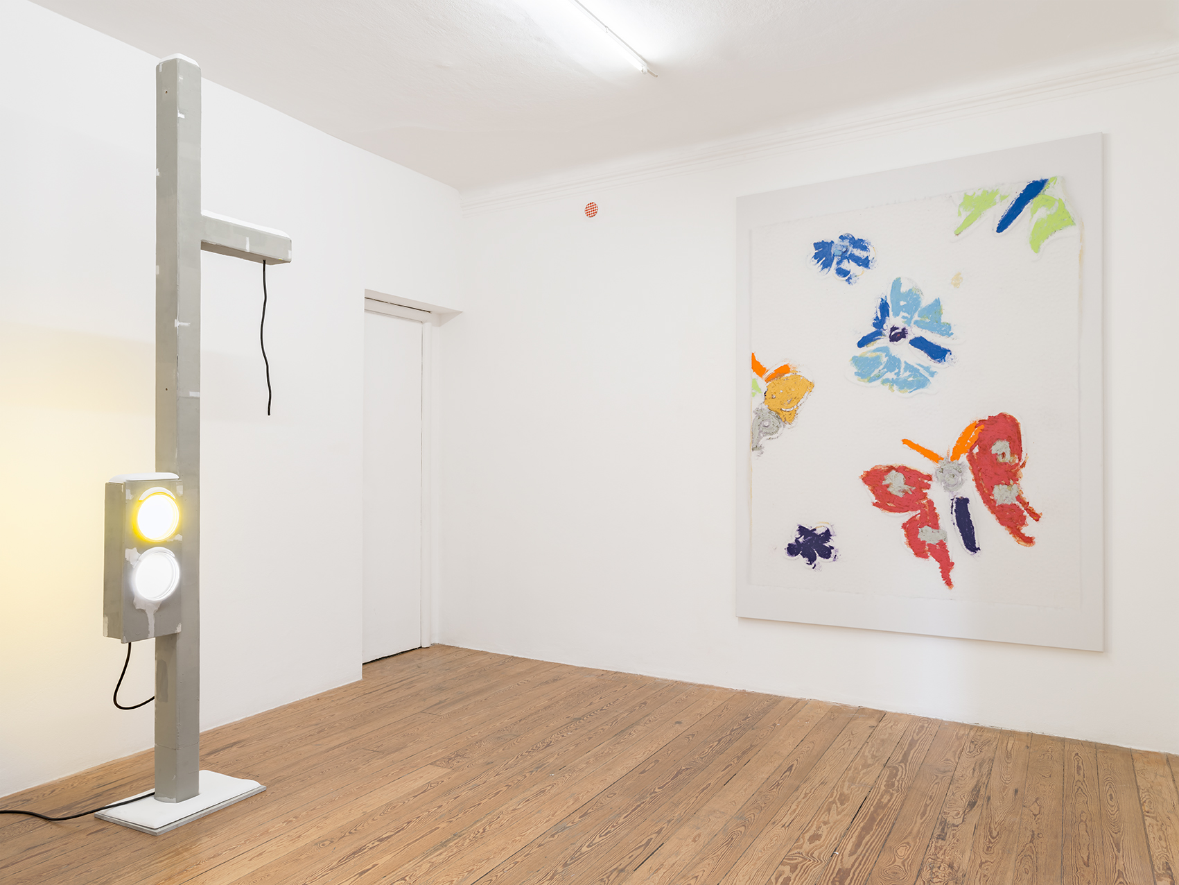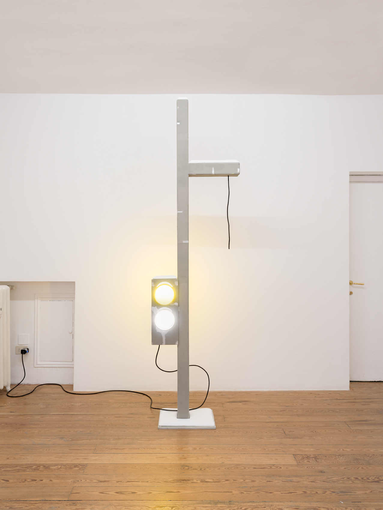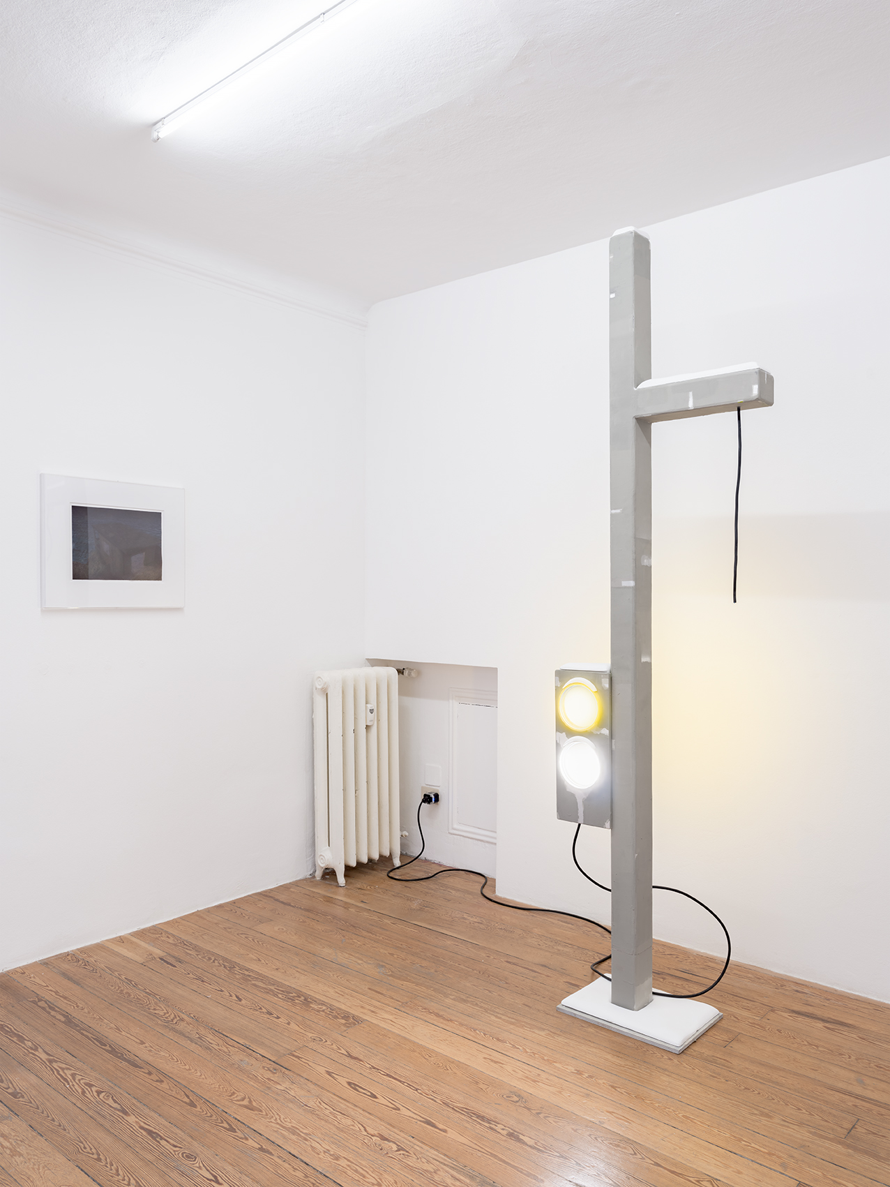 This is, to extend the example with cars, useful, as objects in the mirror are often closer then they appear. The rule of thumb, as imprecise as it is, helps to calculate, to navigate, to self-control our reaction to our perception, in a pragmatic way. What’s the use of pragmatism if not to allow cu- riosity after all? As we scroll on our phones, the thumb remains, regressed, an instance in a less proverbial way, and impulse-control is already half way. Desire thrives and frivolity isn‘t freedom. But sometimes maximum tension (and possibly truth) lies in between (the poles, several) and the que- stion is how to preserve this voltage in the creative process and then, in a work of art. For this we tear ourselves apart at times.This is pretty free of irony.