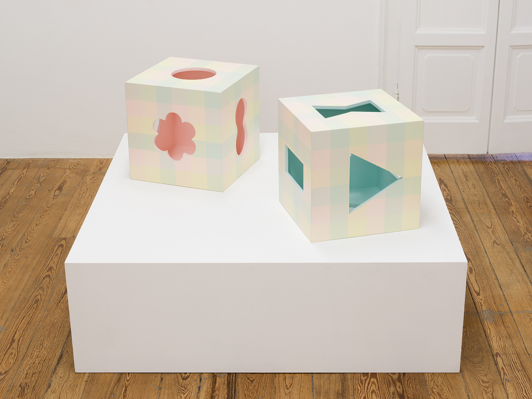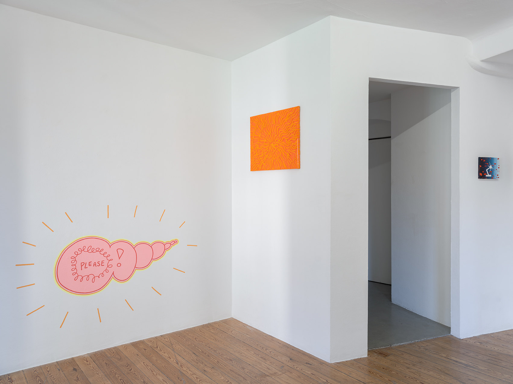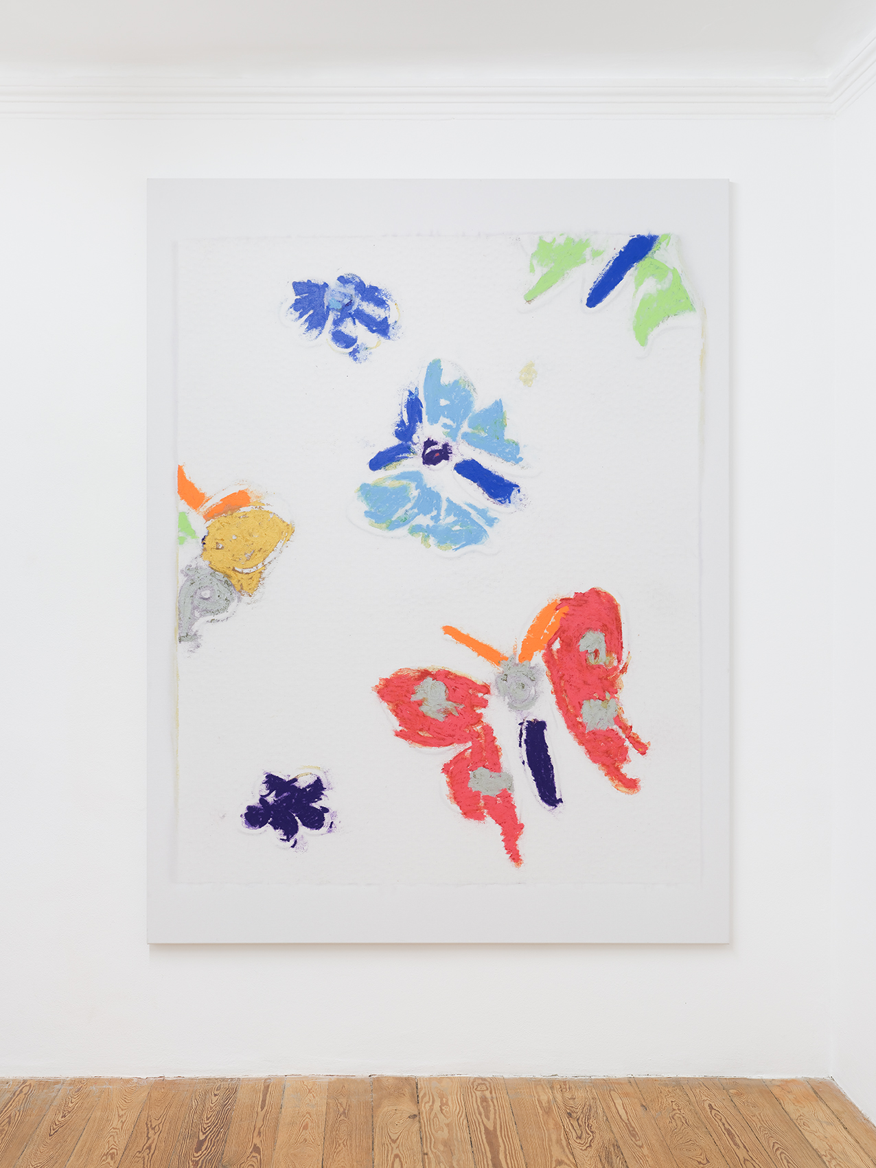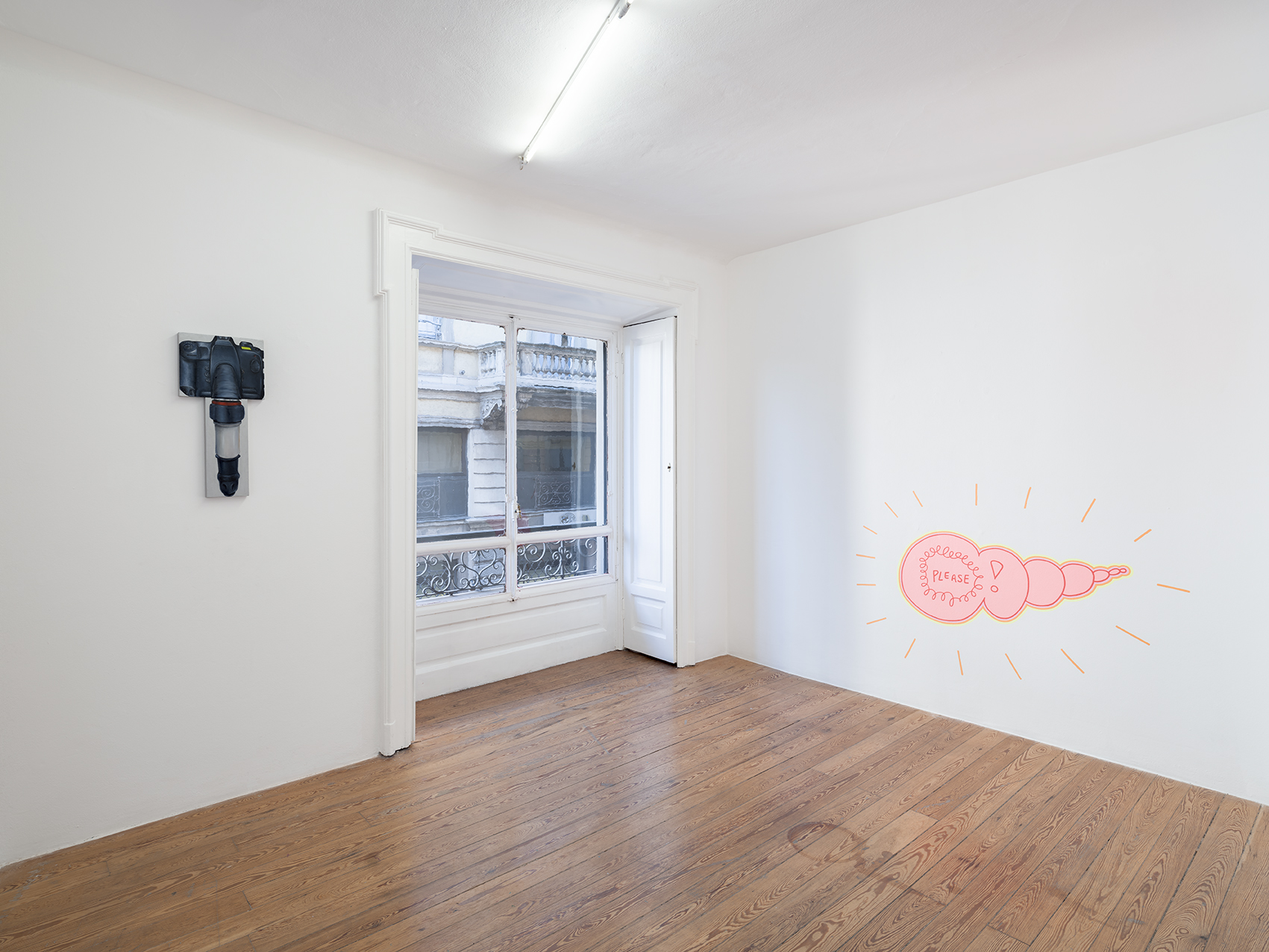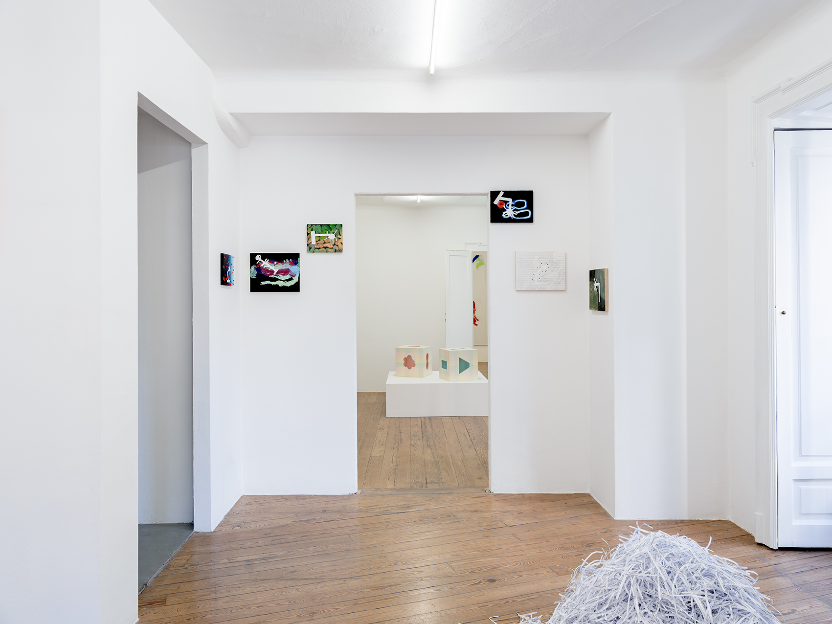 This is, to extend the example with cars, useful, as objects in the mirror are often closer then they appear. The rule of thumb, as imprecise as it is, helps to calculate, to navigate, to self-control our reaction to our perception, in a pragmatic way. What’s the use of pragmatism if not to allow cu- riosity after all? As we scroll on our phones, the thumb remains, regressed, an instance in a less proverbial way, and impulse-control is already half way. Desire thrives and frivolity isn‘t freedom. But sometimes maximum tension (and possibly truth) lies in between (the poles, several) and the que- stion is how to preserve this voltage in the creative process and then, in a work of art. For this we tear ourselves apart at times.This is pretty free of irony.