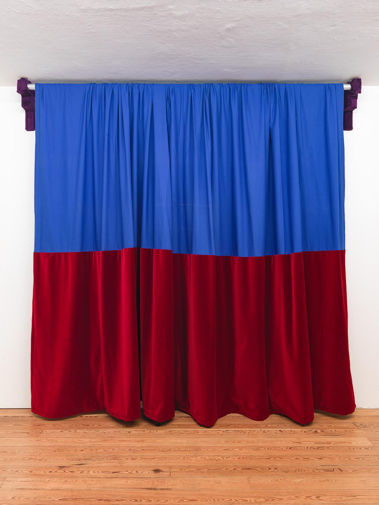 The curtains are all made of velvet, a material with a wealth of connotations. Velvet evokes the capes of European royalty, luxurious interiors, but also cinemas and theatres – illusion. It is the stuff of superlatives: silk velvet e.g. is still the most expensive fabric in the world. It is a stock element of the iconography of Western art history, serving not only for pictorial purposes in paintings, but also as an important lighting design tool in the studio before the advent of artificial lighting: velvet seals off light well, so it can be used to precisely control the amount of light let in to the studio.