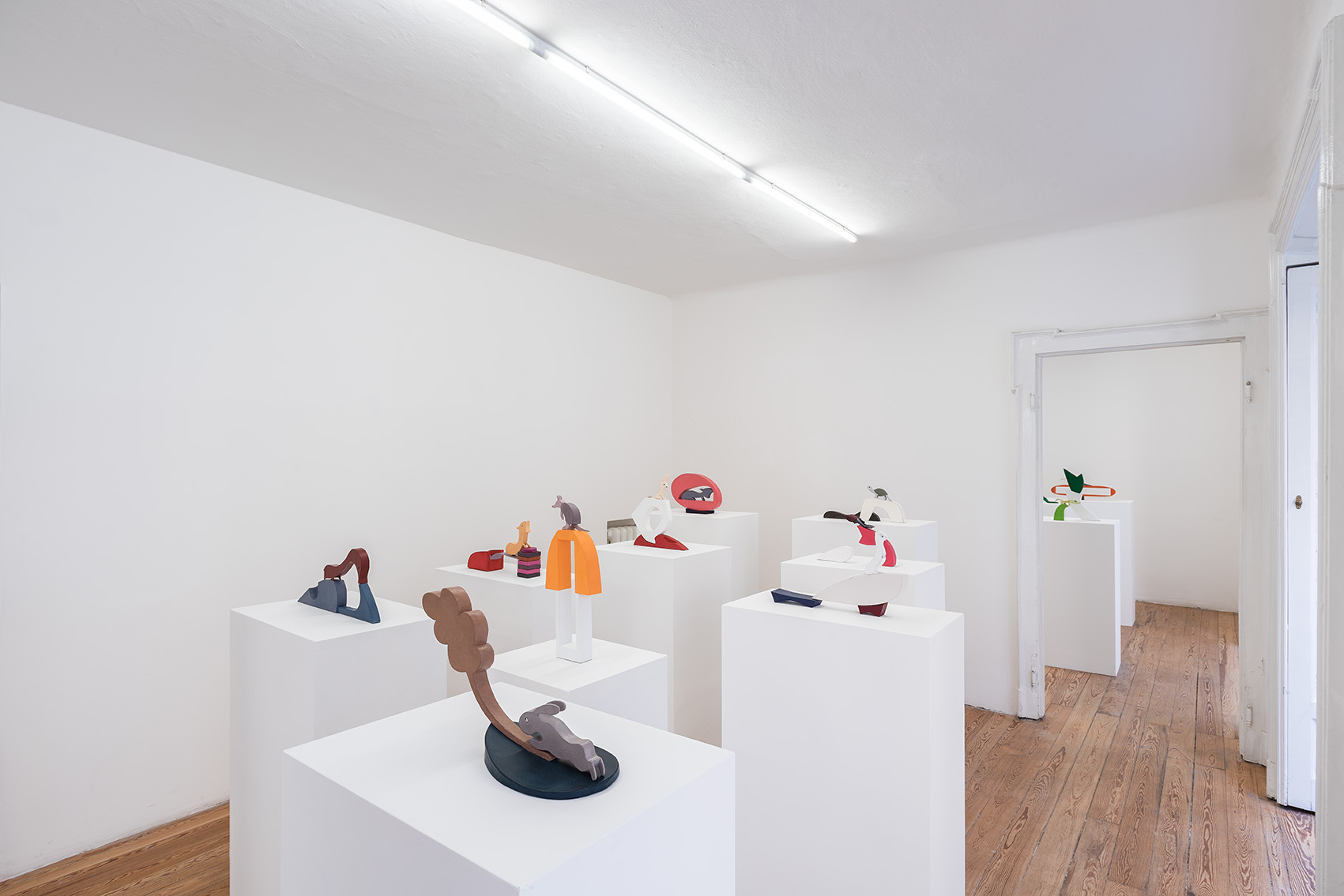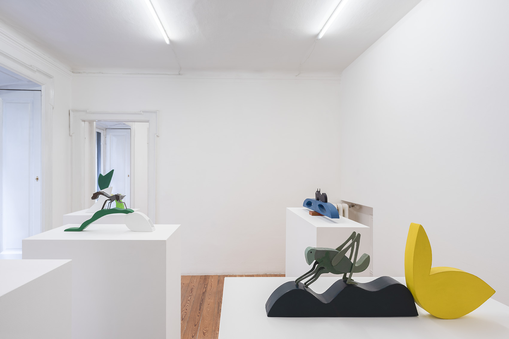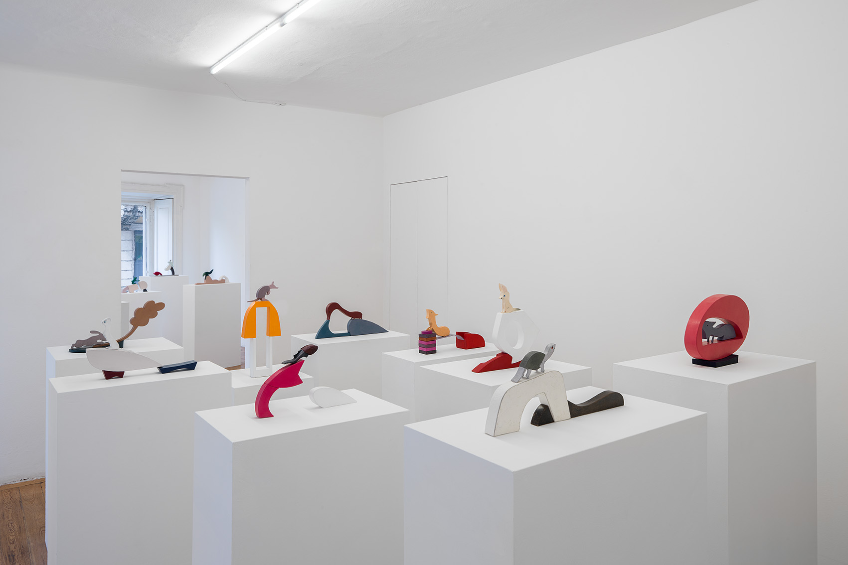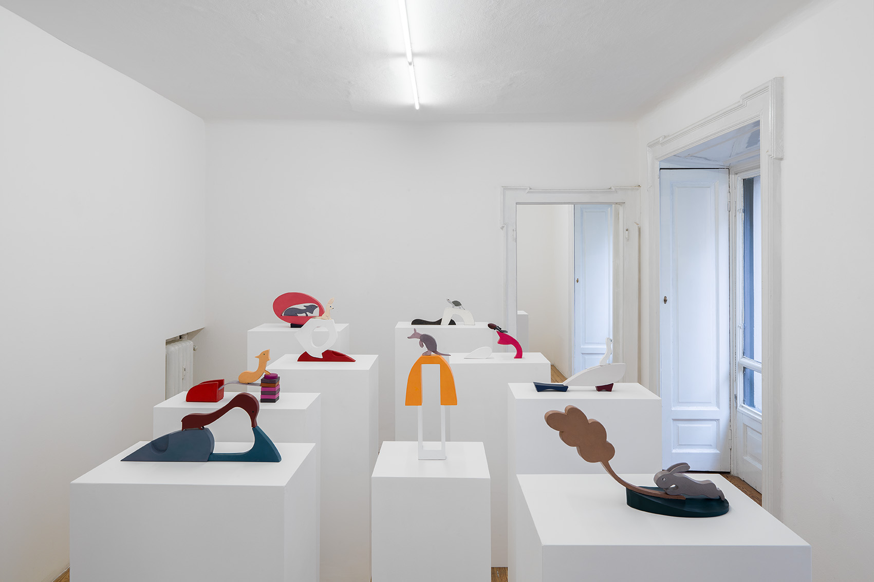 Made in a maquette format and built with layers of wa- tercolor paper, the sculptures on display strive for a large scale. And they represent possible urban furnishings, cross-sections of the natural world to be contemplated, but also touched, penetrated and experienced. Colorful, joyful and public moments of rest and play. And an artist’s dream of interaction with the existing.