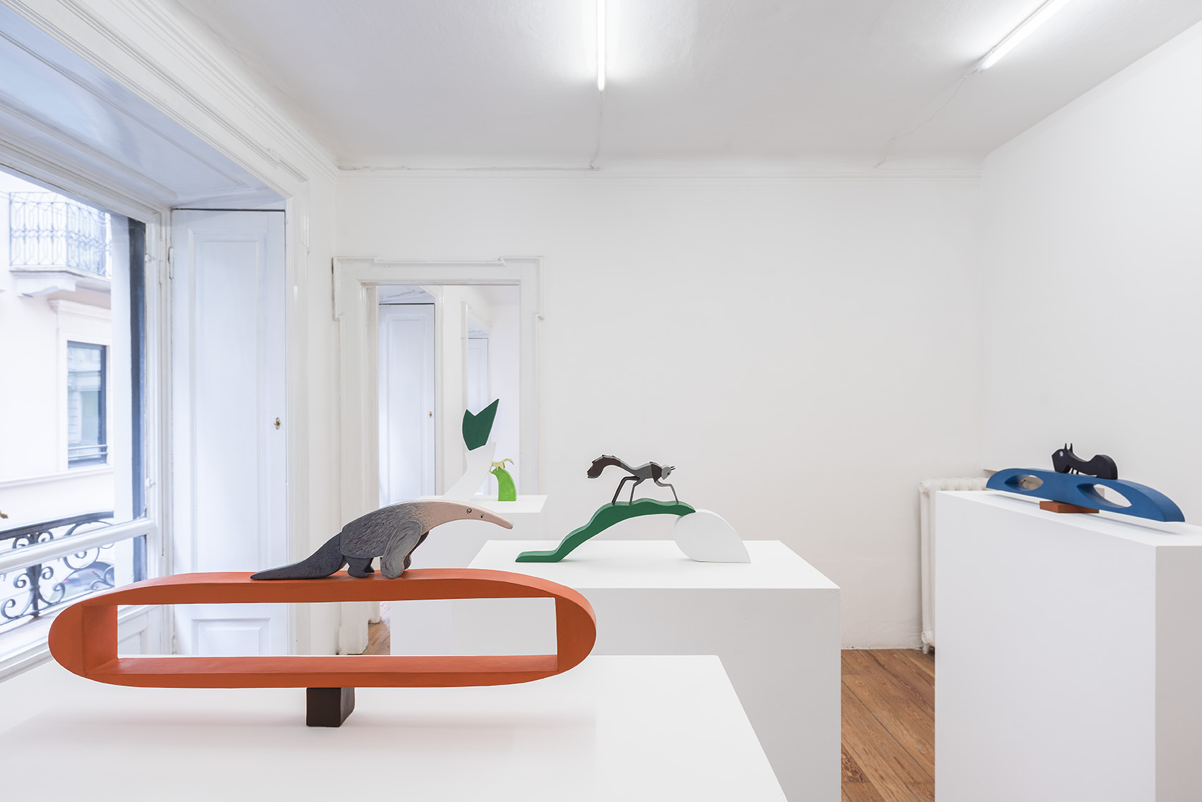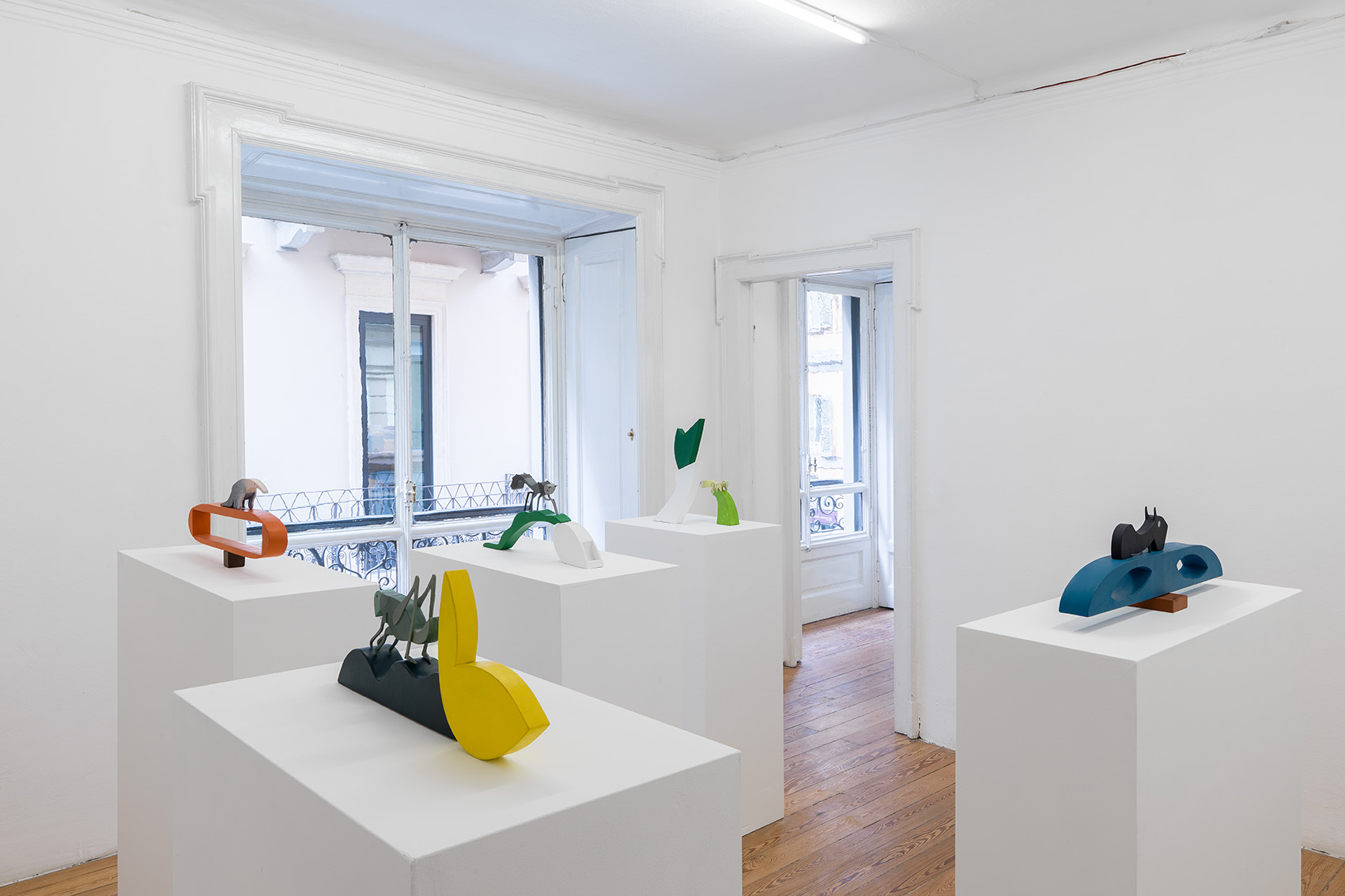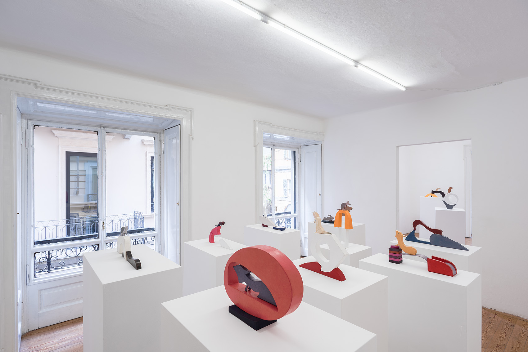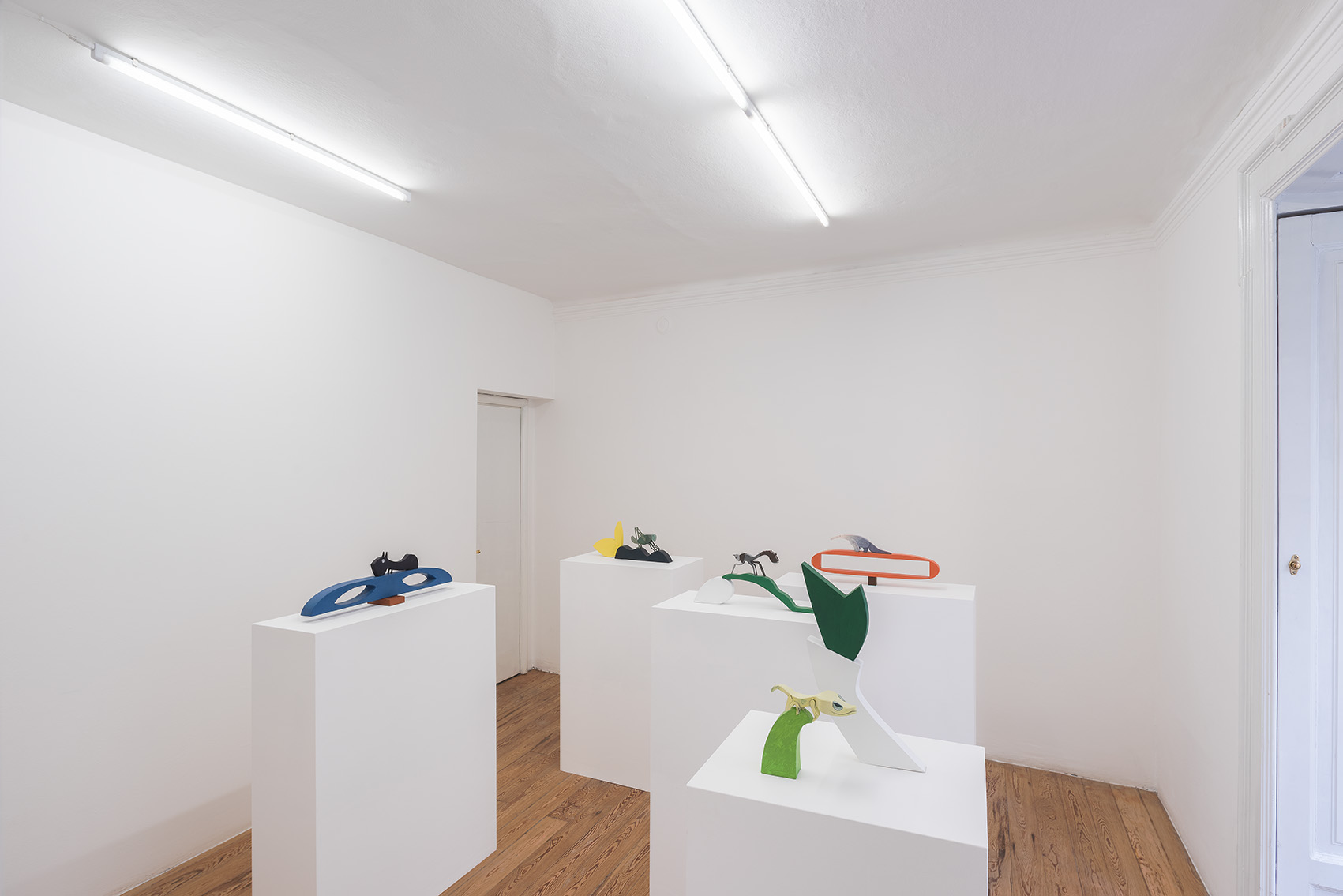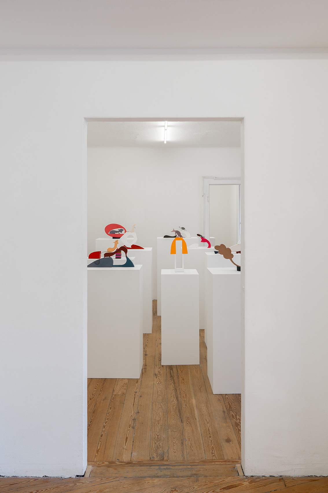 Made in a maquette format and built with layers of wa- tercolor paper, the sculptures on display strive for a large scale. And they represent possible urban furnishings, cross-sections of the natural world to be contemplated, but also touched, penetrated and experienced. Colorful, joyful and public moments of rest and play. And an artist’s dream of interaction with the existing.