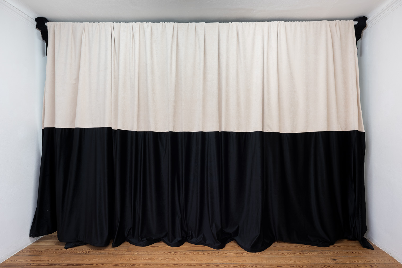 The curtains are all made of velvet, a material with a wealth of connotations. Velvet evokes the capes of European royalty, luxurious interiors, but also cinemas and theatres – illusion. It is the stuff of superlatives: silk velvet e.g. is still the most expensive fabric in the world. It is a stock element of the iconography of Western art history, serving not only for pictorial purposes in paintings, but also as an important lighting design tool in the studio before the advent of artificial lighting: velvet seals off light well, so it can be used to precisely control the amount of light let in to the studio.